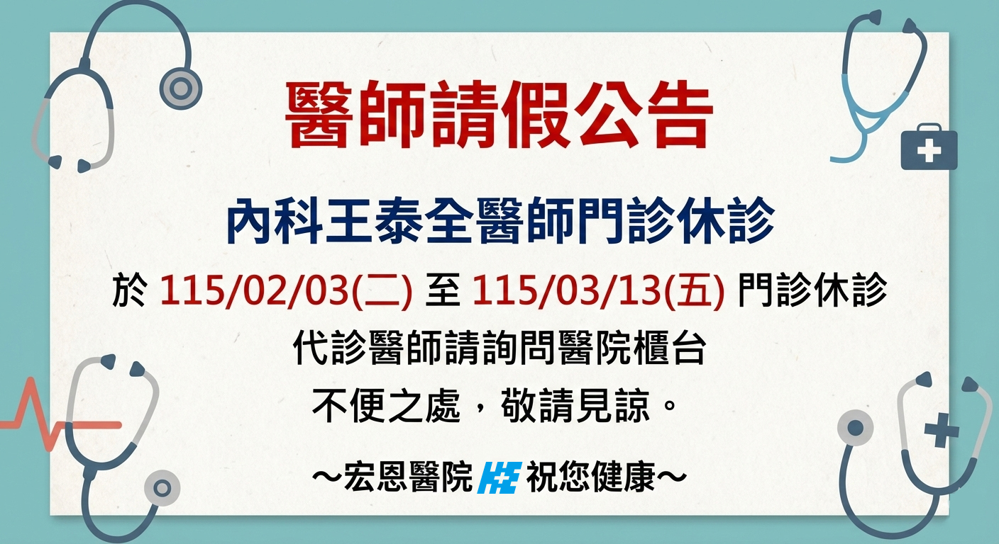 內科王泰全醫師門診休診公告
